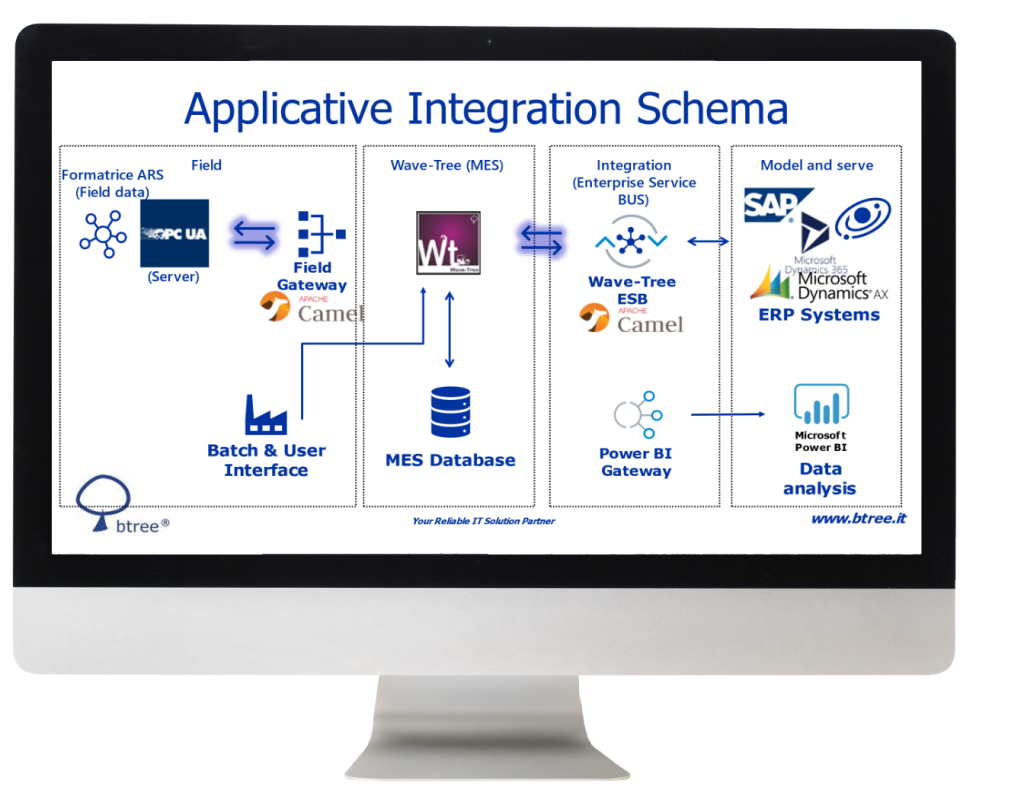 Rappresenta un componente fondamentale per la gestione della catena del valore in ottica Industria 4.0 e si integra armonicamente con i sistemi gestionali aziendali (ERP, HR, Pianificatori e Schedulatori, ecc.).